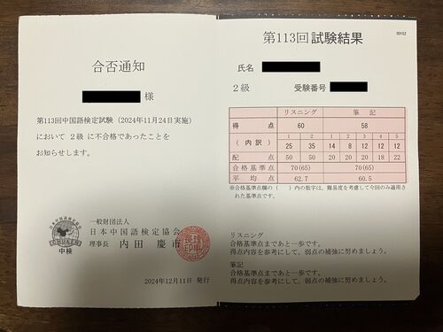 11月24日(日)に受験した、中国語検定2級の結果が届きました。 試験当日の様子は、以下の過去記事で報告しています。 hikkimorry.com まずは、これまでの受験結果を振り返っておきましょう。(カッコ内は合格基準点) ・2021/6/21:リスニング30点(70点)、…