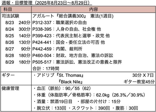 8月も中旬となり、暑さもピークよりは和らいだでしょうか。 今更ですが、夏の暑い盛りに、フルタイム労働+朝勉+夜勉+ダイエット+筋トレには無理があることに気づきました。 やはり学習を優先することとして、無理な摂食は中断しようと思います、、 、、…